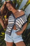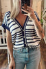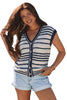 Continue ShoppingBlue Stripe Loose Buttoned V Neck Sweater Vest
