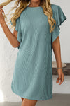 Continue ShoppingCanton Corded Ruffle Sleeve Crew Neck Shift Dress