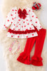 Dress up your little one in this charming 2-piece set for Valentine's Day. The heart print on the white tunic, adorned with a sequined bow and ruffle trim, will bring an adorable touch to their outfit. Made with love and quality, perfect for your little valentine.