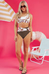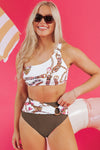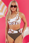Continue ShoppingKhaki Abstract Print One Shoulder Ring Linked High Waist Bikini