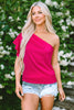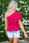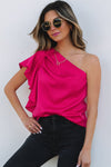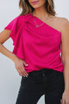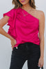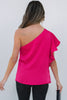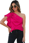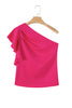 Continue ShoppingStrawberry Pink Asymmetric Shoulder Ruffle Sleeve Elegant Blouse